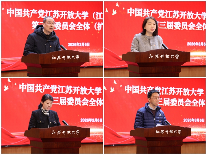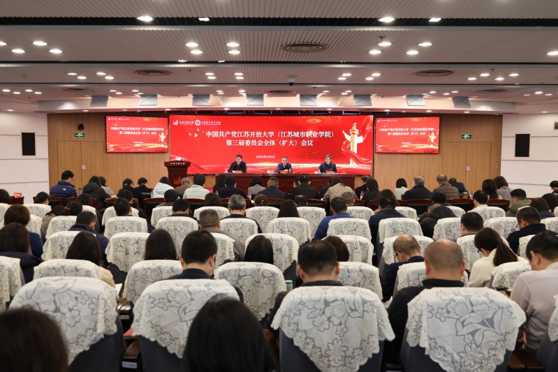3月6日,中国共产党江苏开放大学(江苏城市职业学院)第三届委员会全体(扩大)会议在定淮门校区二楼报告厅举行。全体党委委员参加会议,纪委委员、中层干部、科职干部代表等150余人列席会议,会议由党委副书记牛玉韬主持。