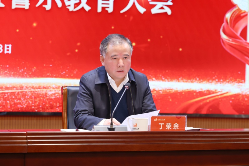 党委书记丁荣余作《扛牢主体责任 弘扬清风正气 以正确政绩观纵深推进全面从严治党》的讲话,指出要深刻把握全面从严治党为实现“十五五”时期目标任务提供坚强保障的重大使命,始终保持对反腐败斗争严峻形势的清醒认识,一步不停歇、半步不退让,坚定不移打赢打好反腐败斗争攻坚战持久战总体战。对2026年学校全面从严治党工作,他提出四点意见:一是提高政治站位,坚决扛起全面从严治党主体责任。要旗帜鲜明加强党的政治建设,压紧压实管党治党政治责任,坚持不懈强化思想理论武装,扎实开展正确政绩观学习教育。二是保持战略定力,坚定不移正风肃纪反腐。要持之以恒抓作风建设,筑牢中央八项规定堤坝,从严从实抓纪律建设,始终坚持严的主基调,常态长效抓制度建设,铲除腐败滋生土壤条件。三是聚焦关键领域,持续推动身边不正之风和腐败问题集中整治。要紧盯“关键少数”强化权力运行监督制约,聚焦“关键领域”深挖彻查重点环节风险,回应“师生关切”坚决整治身边不正之风。四是坚持系统施治,一体推进“不敢腐、不能腐、不想腐”建设。要始终保持惩治腐败高压态势,不断完善权力配置和运行制约机制,强化警示教育穿透力,用身边事教育身边人,让党员干部从思想深处真正知敬畏、存戒惧、守底线。他强调,领导班子要率先垂范、以身作则,从严从实抓纪律建设,要以如履薄冰的警醒意识筑牢思想防线,以自我革命的政治勇气推进全面从严治党,以从严治校的坚定决心深化治理,以公开透明的制度规范学校运行。