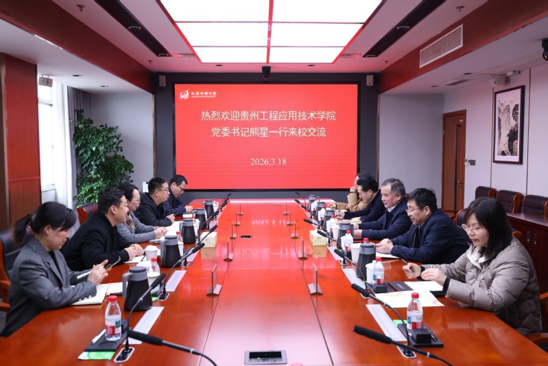 3月18日,贵州工程应用技术学院党委书记熊星一行来我校调研交流。校党委书记丁荣余主持座谈会,党委常委、副校长耿焕同及相关职能部门负责人参加会议。